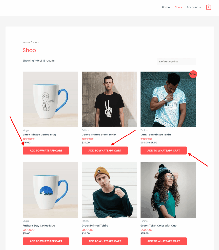 When you activate the Add to WhatsApp Cart option, your customers will see Add to WhatsApp Cart button instead of the add to cart button in shop / category page. Clicking on this button will add that particular product to the WhatsApp Cart.